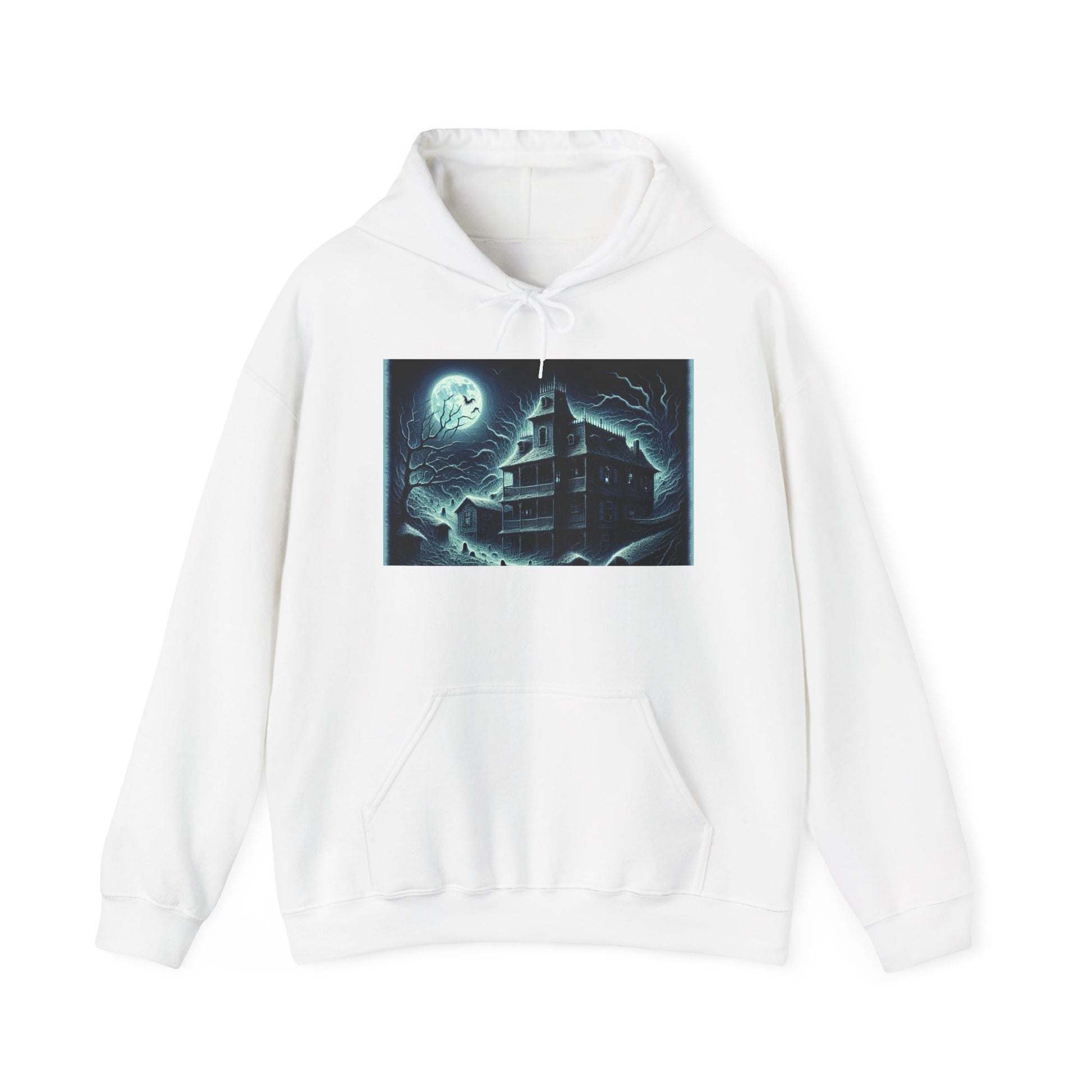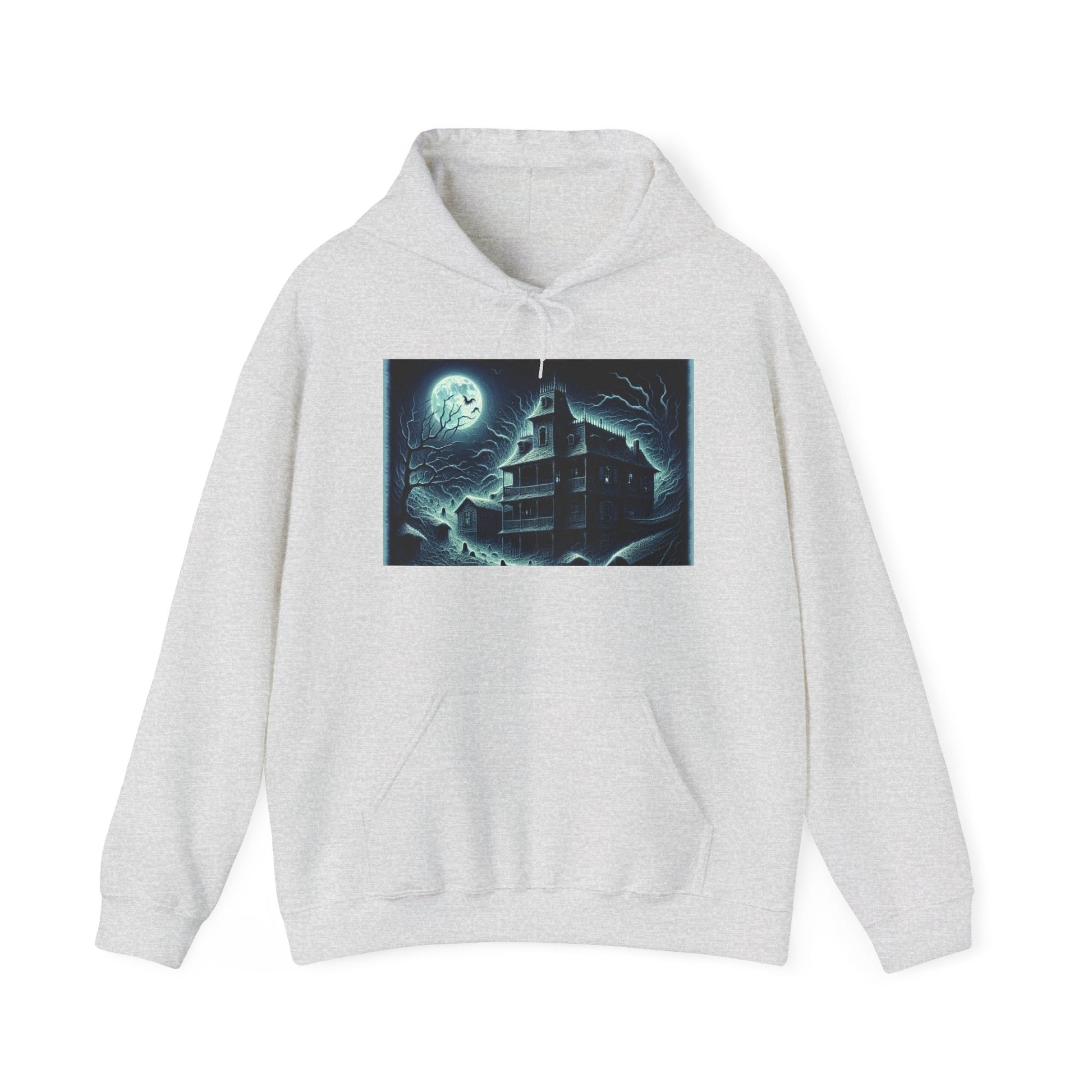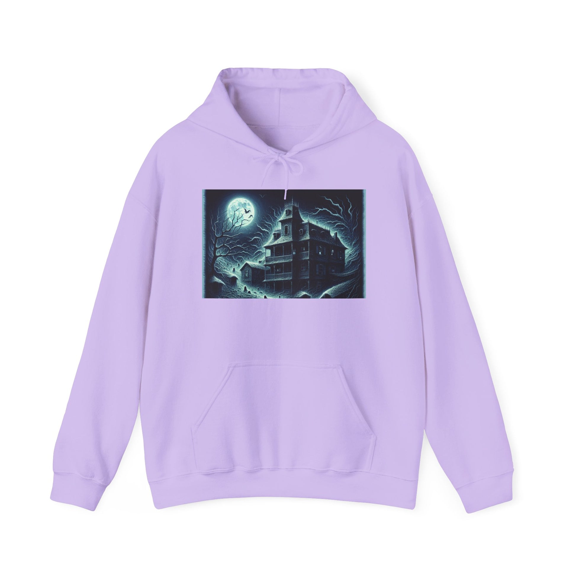 Haunted House Graphic Hoodie - Perfect for Halloween and Cozy Nights